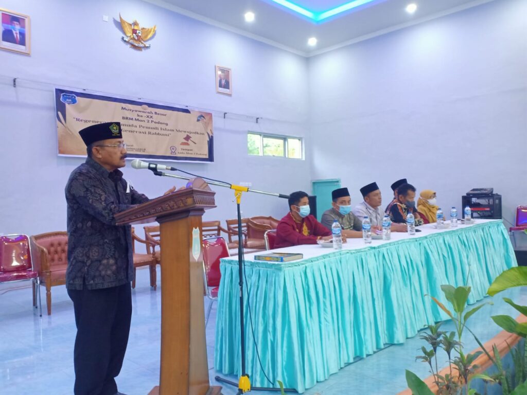 Padang, humas — Kepala MAN 2 Kota Padang Akhri Meinhardi membuka musyawarah besar (Mubes) ke XX Eksktrakurikuler Bina Remaja Muslim (BRM) yang berlangsung di Aula Abu Bakar Shiddiq, kampus MAN 2 Kota Padang, Jumat (18/03/2022) siang.