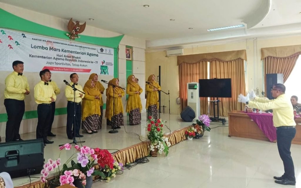 Lomba paduan suara Mars Kemenag ini merupakan rangkaian Hari Amal Bhakti (HAB) kemenag ke-77 yang diselenggarakan oleh Kantor Wilayah Kemenag Provinsi Sumbar. Tim juri yang melakukan penilaian adalah, M. Taufik, MA dan Khairat KDI.