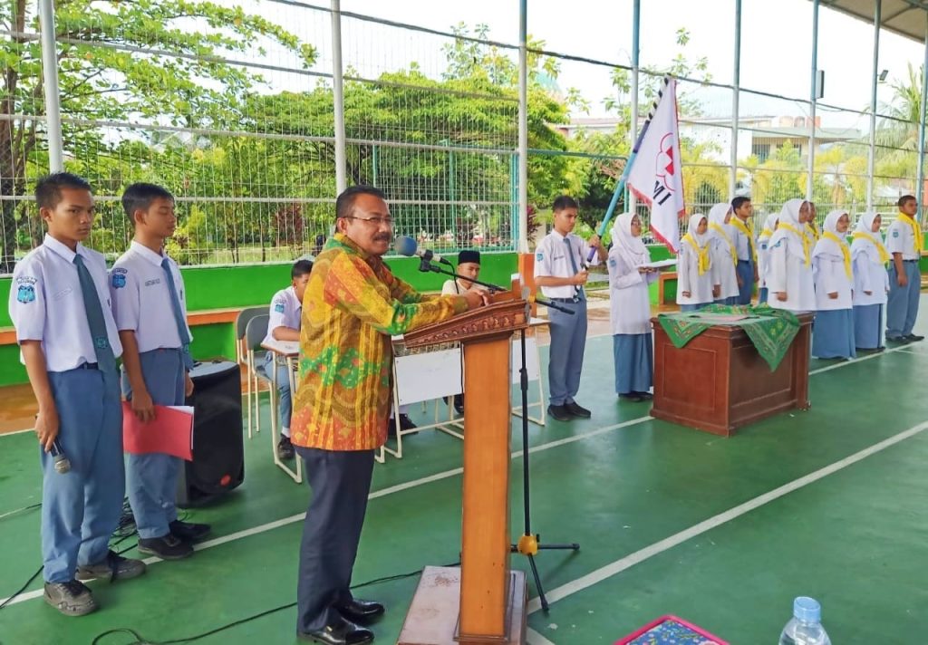 Padang, humas — Kepala madrasah, Akhri Meinhardi memimpin upacara serah terima jabatan (Sertijab) komandan Palang Merah Remaja (PMR) MAN 2 Padang dari Komandan Abdul Hamid kepada M.Raihan Pramana Wiguna masa bakti tahun 2023.