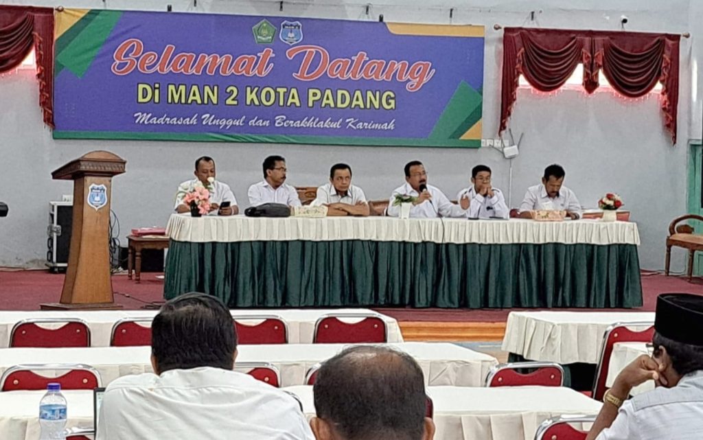 Padang, humas – MAN 2 Kota Padang menggelar bimbingan teknis pembuatan soal Asesmen Madrasah (AM) Tahun Pelajaran 2023/2024 di Aula Abu Bakar Shiddiq kampus madrasah tersebut, Selasa (13/02/2024).