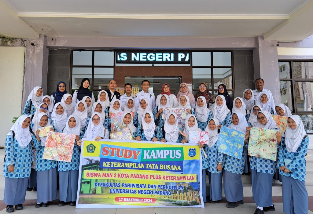 Padang, humas – Tercatat 36 siswa Program Keterampilan Tata Busana MAN 2 Kota Padang melakukan studi kampus ke Fakultas Pariwisata dan Perhotelan Universitas Negeri Padang (UNP), Selasa (17/12/2024).