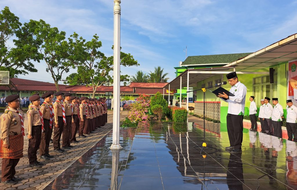 Pengukuhan ini digelar di lapangan basket kampus madrasah tersebut bersamaan dengan upacara bendera, Senin (10/02/2025). Al Anshari lalu membacakan Janji Pelantikan