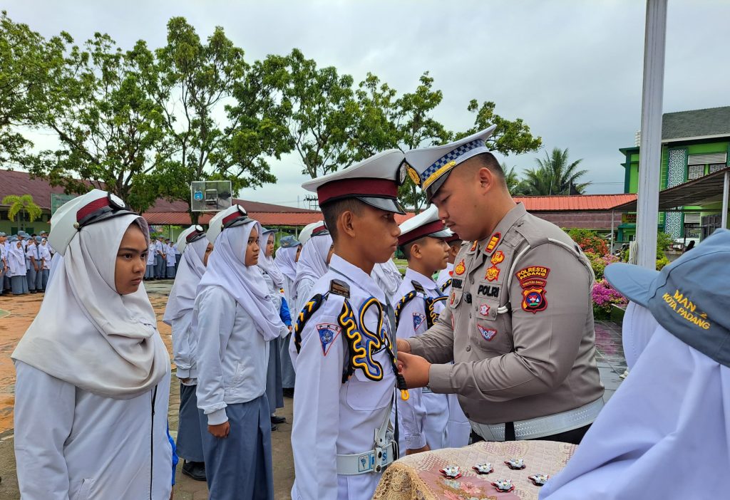 Padang, Humas – Kasat Lantas Polresta Padang, AKP Riwal Maulidinata mengukuhkan anggota Patroli Keamanan Sekolah (PKS) MAN 2 Padang untuk periode 2025-2026.
