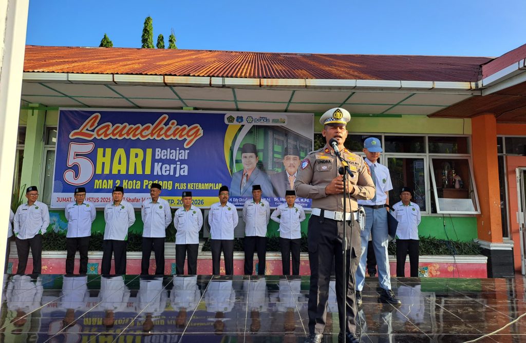 Kanit 3 Subdit Kamsel Ditlantas Polda Sumbar, Iptu Undra Putra, bertindak sebagai pembina upacara. Dalam amanatnya, ia menyebutkan bahwa kehadiran rutin Ditlantas di MAN 2 Padang bukan tanpa alasan.