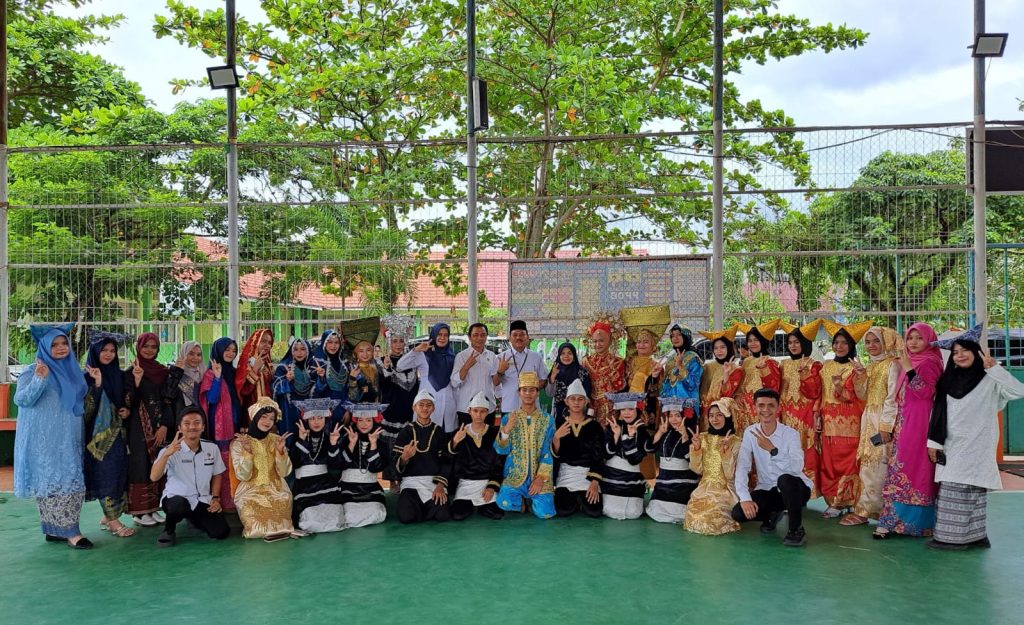 Para siswa tampil mengenakan pakaian adat Minangkabau dengan beragam peran. Ada yang memakai pakaian penghulu, malin, anak daro, bundo kanduang, hingga busana adat khas Minang lainnya.