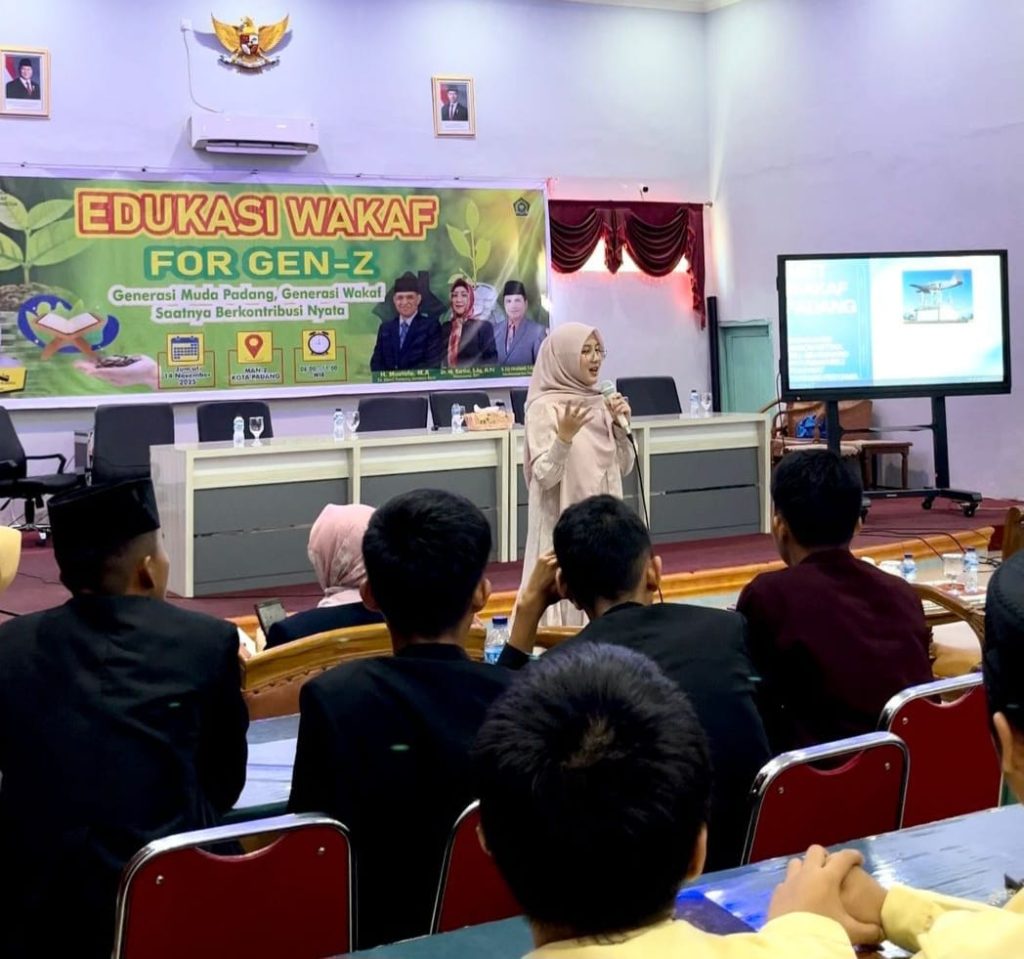 Padang, Humas – Badan Wakaf Indonesia (BWI) menggelar edukasi wakaf untuk generasi Z di MAN 2 Padang, Jumat (14/11/2025). Kegiatan yang diikuti ratusan siswa dari MAN 2, MAN 1, dan MAN 3 Padang itu digelar untuk memperkuat pemahaman dan literasi wakaf sejak bangku sekolah.