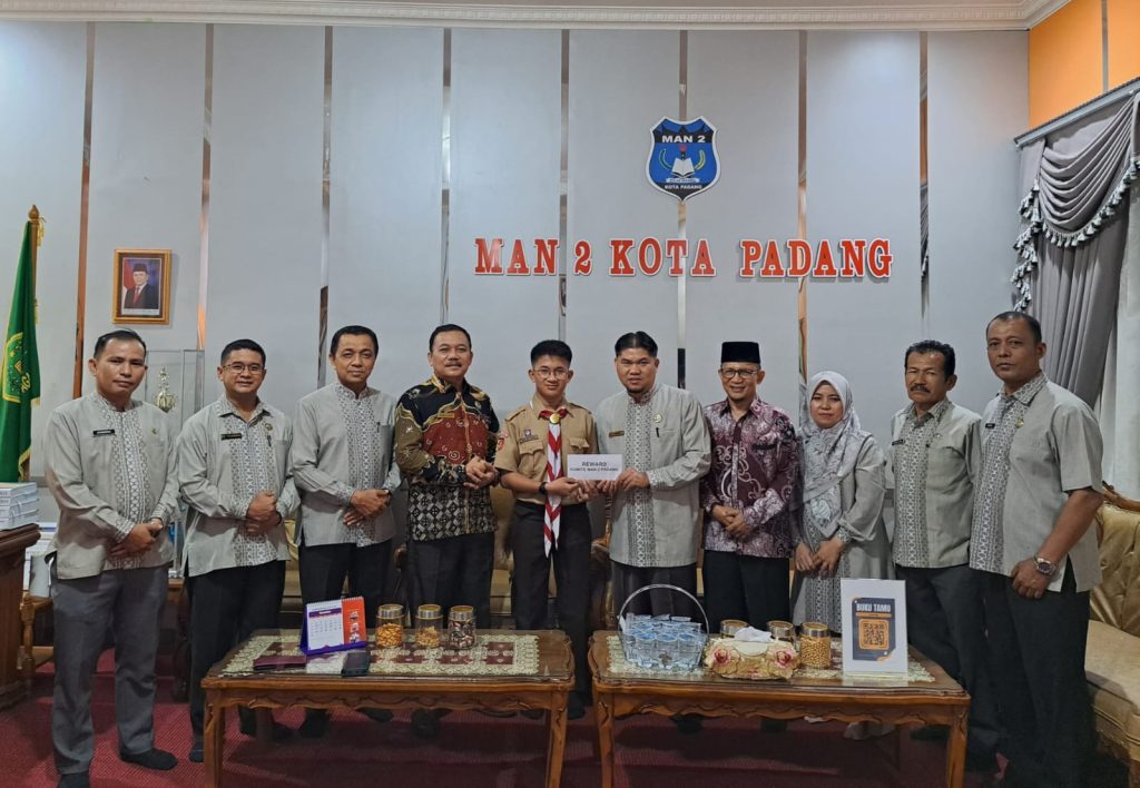 Padang, Humas – Faizullatif Fajran, siswa kelas XI IPA 3 MAN 2 Padang yang akrab disapa Fata, resmi dilepas untuk mengikuti Olimpiade Bahasa Arab (OBA) Nasional 2025 di Jakarta. Prosesi pelepasan berlangsung di ruang kepala madrasah pada Kamis (6/11/2025).