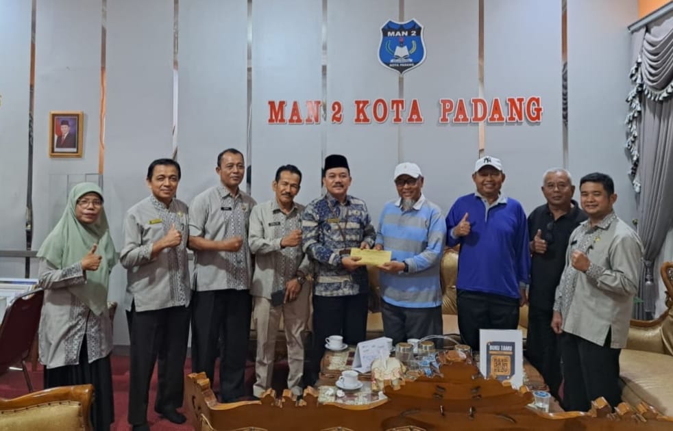 Padang, Humas – Kepedulian terhadap sarana ibadah diwujudkan MAN 2 Padang dengan menyalurkan donasi Rp10.556.000 untuk pembangunan Masjid Ikhwanussafa di Gunung Pangilun, Padang. Penyerahan dilakukan Kamis (20/11/2025) di ruang kepala madrasah dan diterima pengurus masjid, Aguswandi.