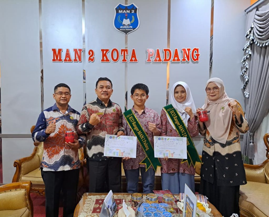 Padang, Humas – Dua siswa MAN 2 Padang ditetapkan sebagai Eco Ranger MAN 2 Padang setelah mengikuti pelatihan Integrasi Forest and Other Land Use (FOLU) dan Pendidikan Ramah Lingkungan Hidup (PRLH) yang digelar SMA Laboratorium Universitas Negeri Padang (UNP), 7 Desember 2025.