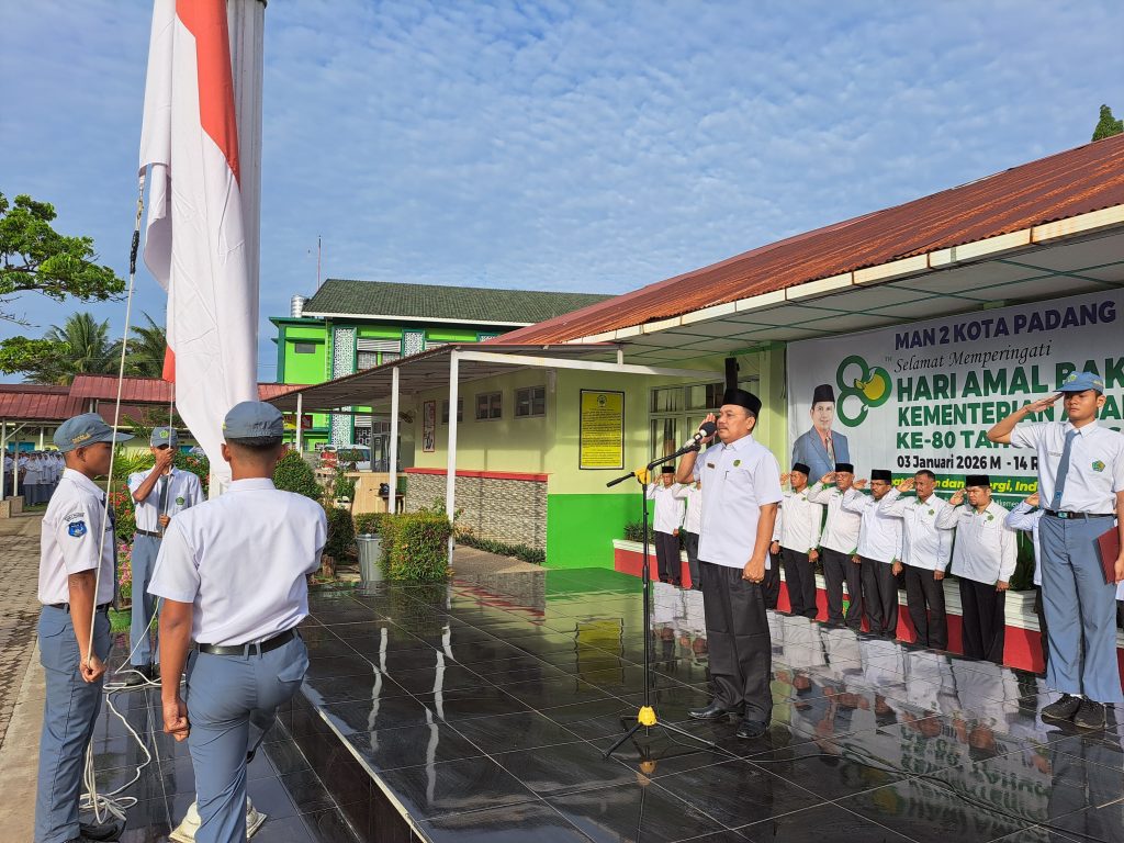 Padang, Humas – MAN 2 Padang menggelar upacara bendera perdana pascalibur semester satu Tahun Pelajaran 2025/2026 pada Senin (5/1/2026). Upacara berlangsung di lapangan basket madrasah.