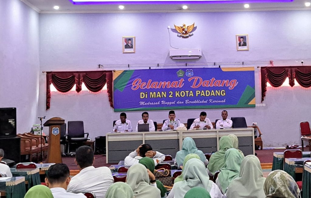 Kegiatan penyusunan soal dipusatkan di Aula Abu Bakar Shiddiq MAN 2 Padang, Senin (9/2/2026). Proses ini dilakukan secara bersama-sama untuk memastikan kualitas soal sesuai dengan standar evaluasi pembelajaran.