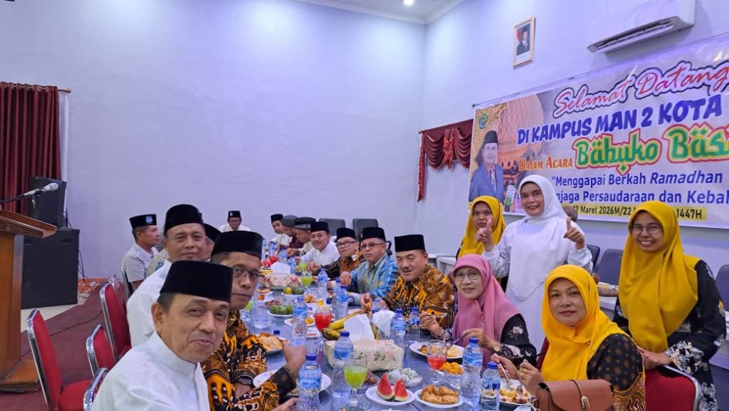 Padang, Humas – MAN 2 Padang menggelar buka puasa bersama di Aula Abu Bakar Shiddiq, Kamis (12/3/2026). Kegiatan yang mengusung tema “Menggapai Berkah Ramadhan dengan Menjaga Persaudaraan dan Kebahagiaan” ini diikuti guru dan pegawai di lingkungan madrasah tersebut.